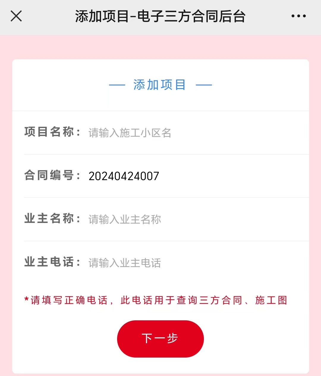 03.点击三方合同录入,按照提示信息添加项目